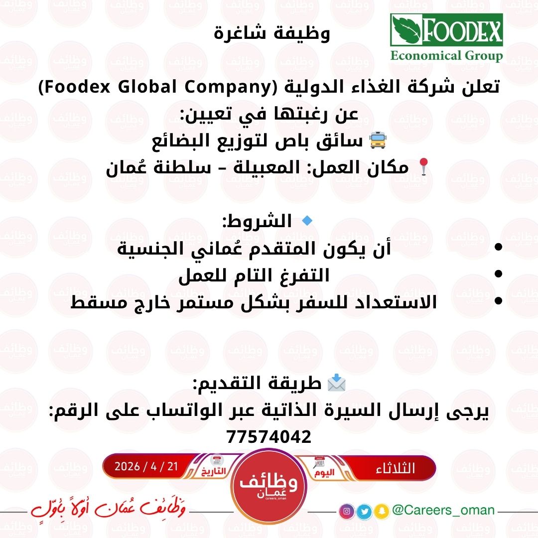شركة الغذاء الدولية في المعبيلة - وظيفة شاغرة ( سائق باص لتوزيع البضائع )