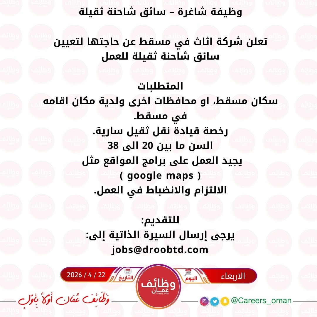 ارسل السيرة الذاتية على الايميل jobs@droobtd.com