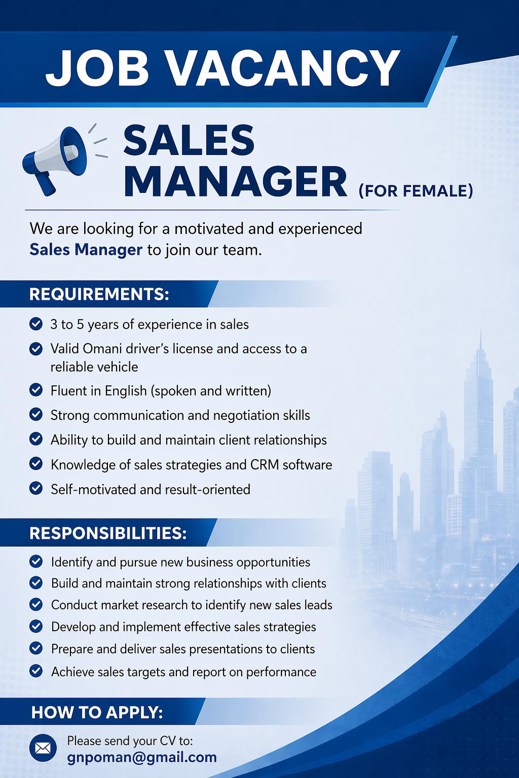 ارسل السيرة الذاتية على الايميل gnpoman@gmail.com