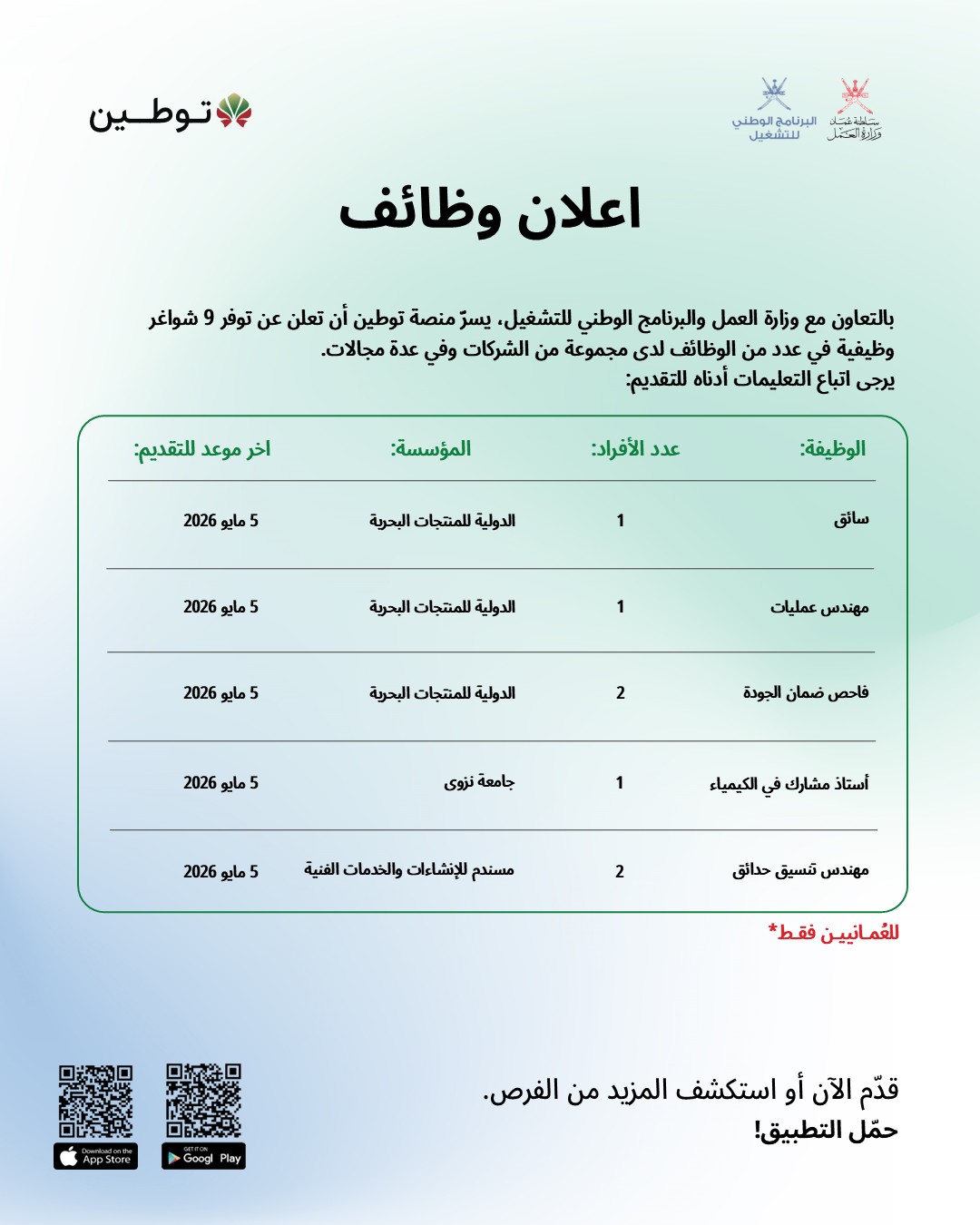 منصة توطين - توفر 9 شواغر وظيفية لدى مجموعة من الشركات وفي عدة مجالات