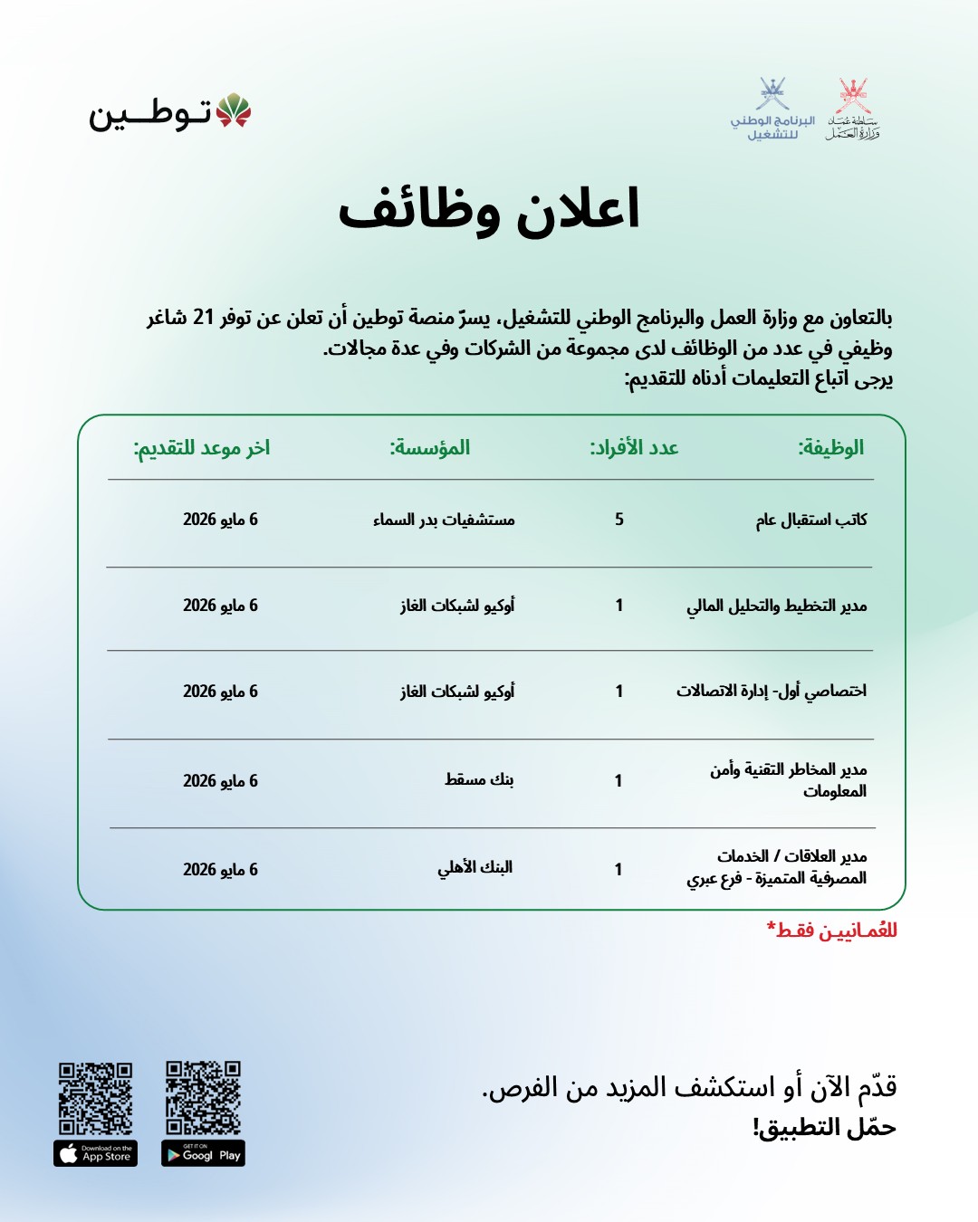 منصة توطين - توفر 21 وظيفة شاغرة لدى مجموعة من الشركات وفي عدة مجالات