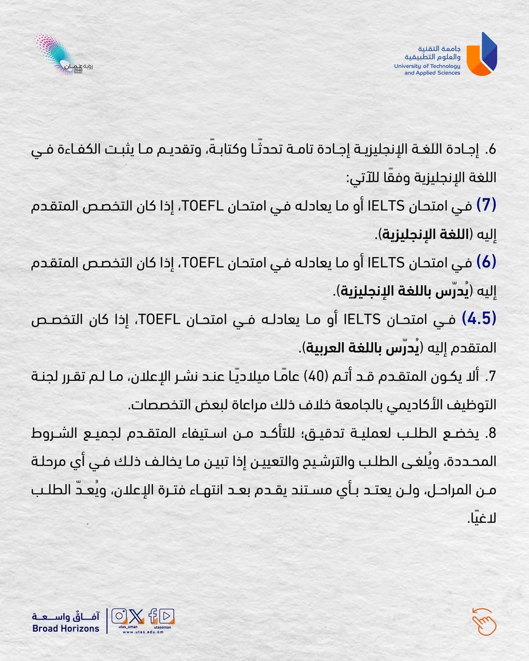 جامعة التقنية والعلوم التطبيقية بمسندم - توفر وظائف تدريسية شاغرة