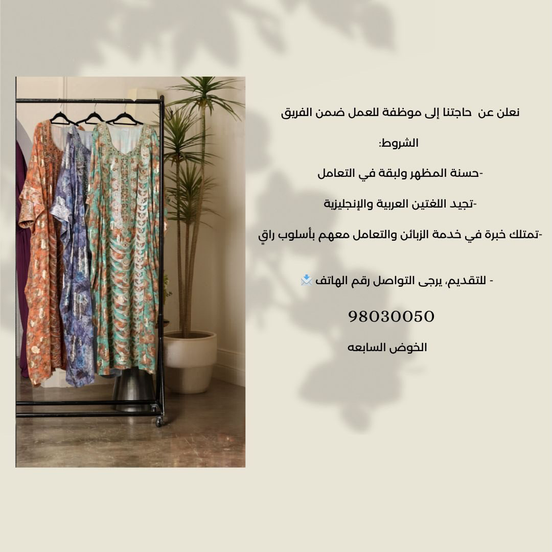 بوتيك عبايات بالخوض السابعة - وظيفة شاغرة ( موظفة )
