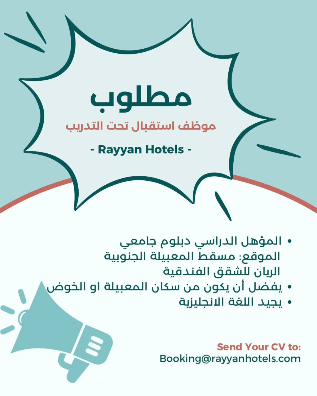 ارسل السيرة الذاتية على الايميل Booking@rayyanhotels.com
