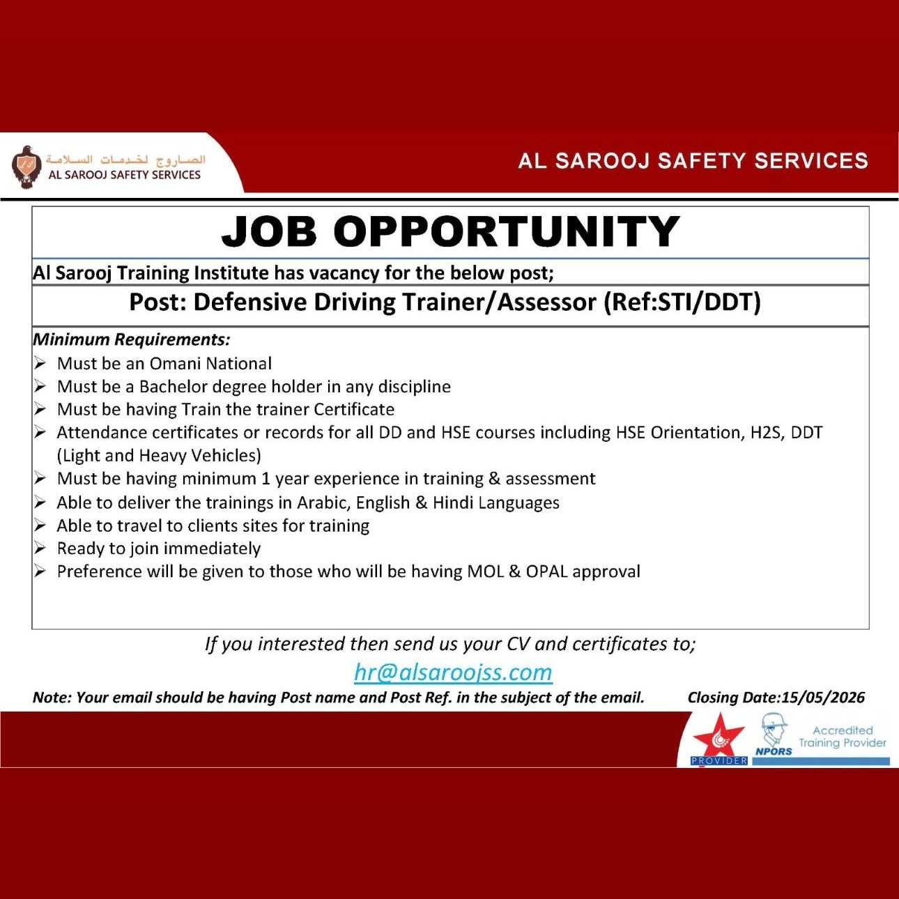 معهد الصاروج لخدمات السلامة - توفر وظائف شاغرة