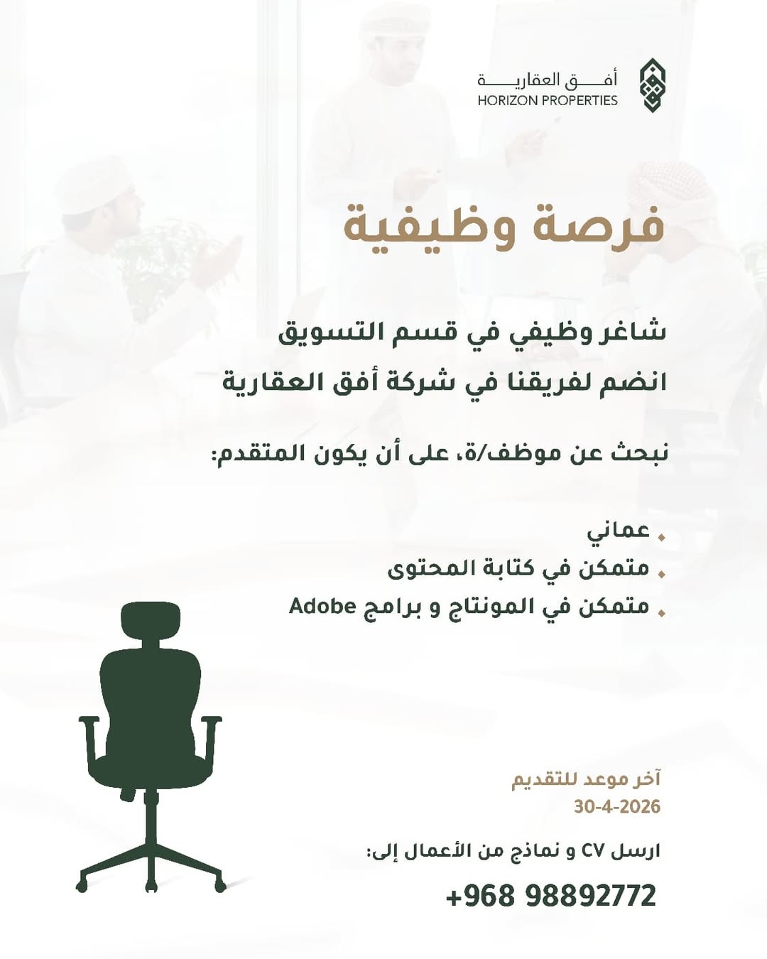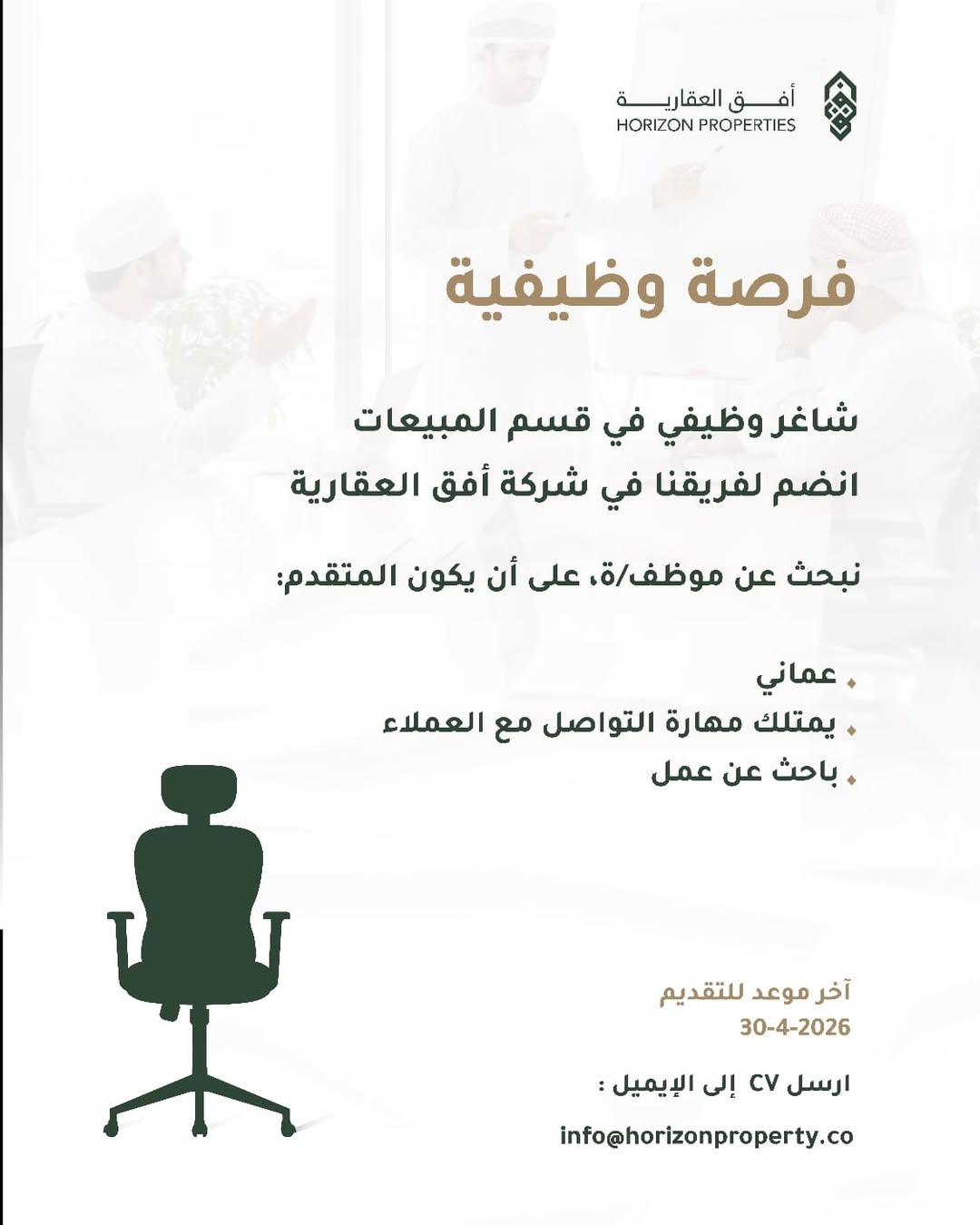 شركة أفق العقارية - توفر وظائف شاغرة في مجال التسويق والمبيعات