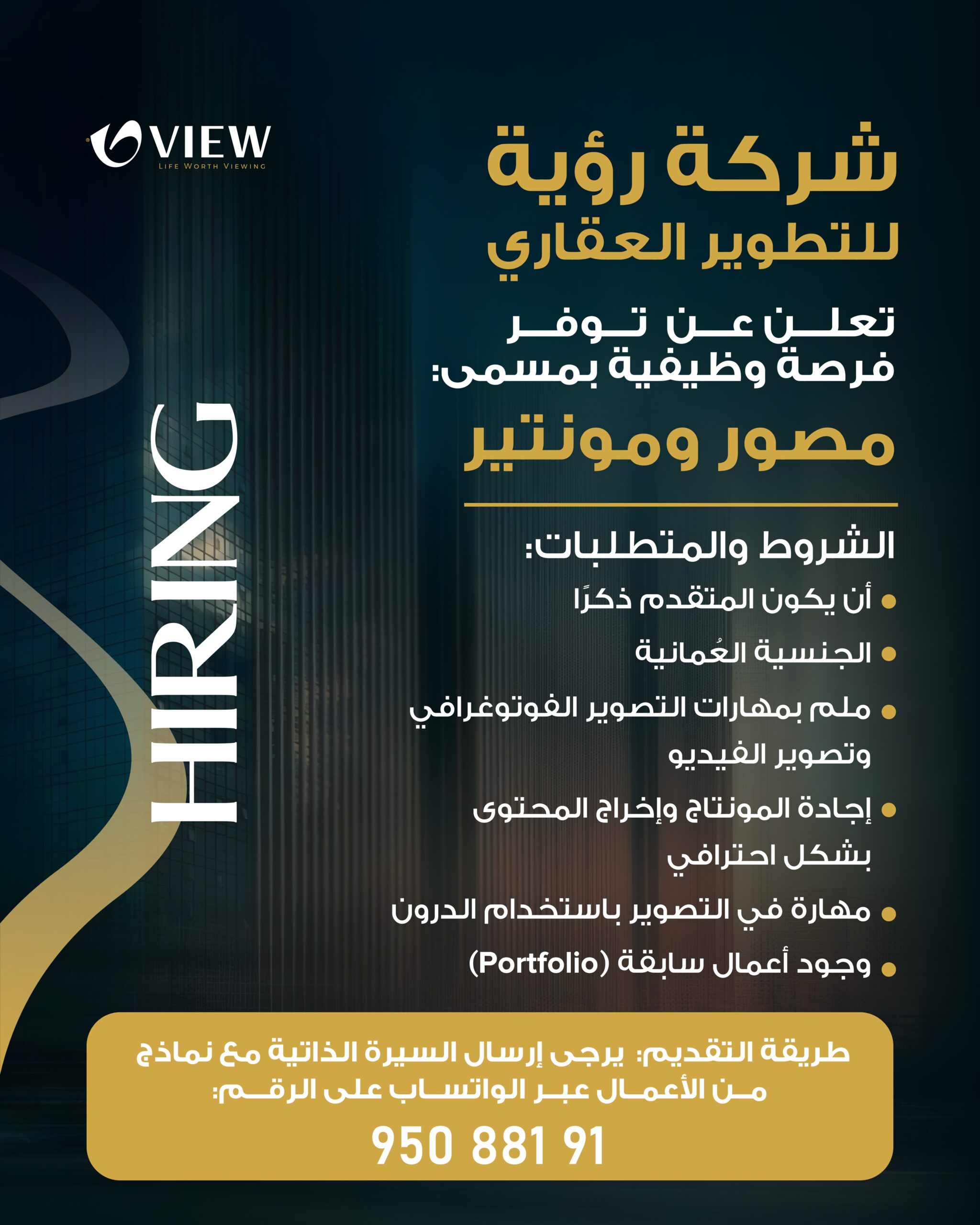 شركة رؤية للتطوير العقاري - فرصة وظيفية (مصور ومونتير )
