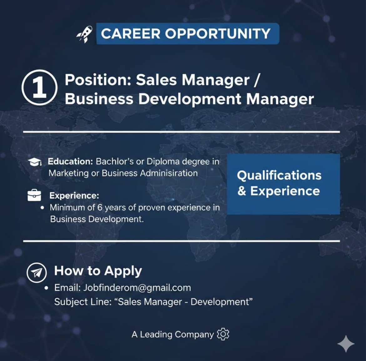 احدى الشركات رائدة - وظيفة شاغرة ( Sales Manager / Business Development Manager )