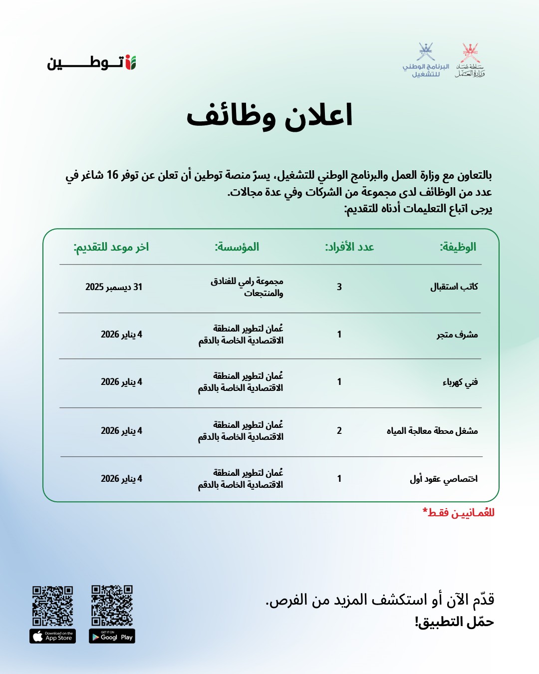 منصة توطين - توفر 16 شاغر في عدد من الوظائف لدى مجموعة من الشركات وفي عدة مجالات
