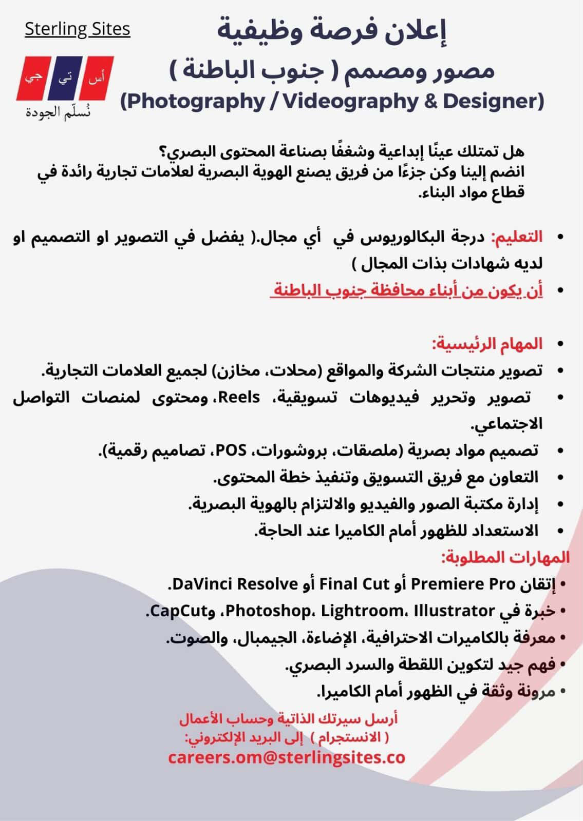 شركة أس تي جي في جنوب الباطنة - وظيفة شاغرة ( مصور / مصمم )
