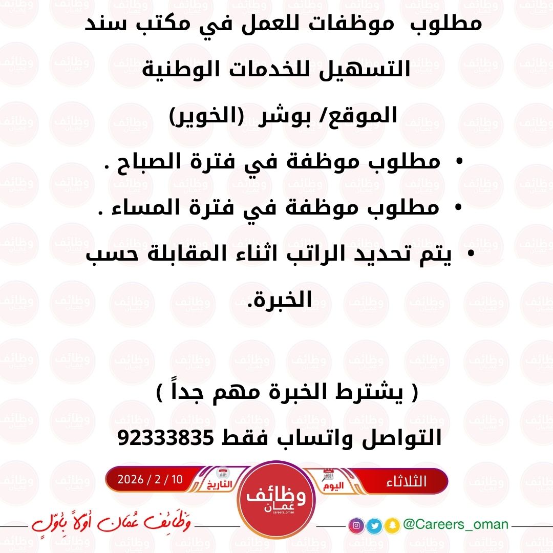 مكتب سند للخدمات في بوشر - وظيفة شاغرة ( موظفات )