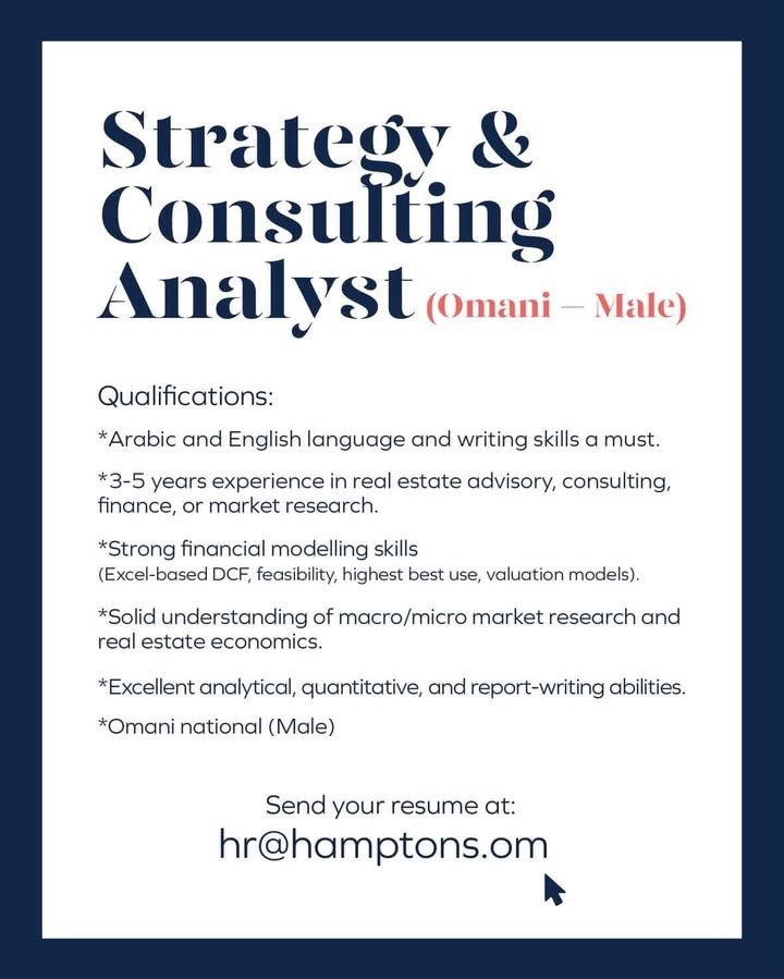 شركة Hamptons - وظيفة شاغرة ( Strategy & Consulting Analyst )
