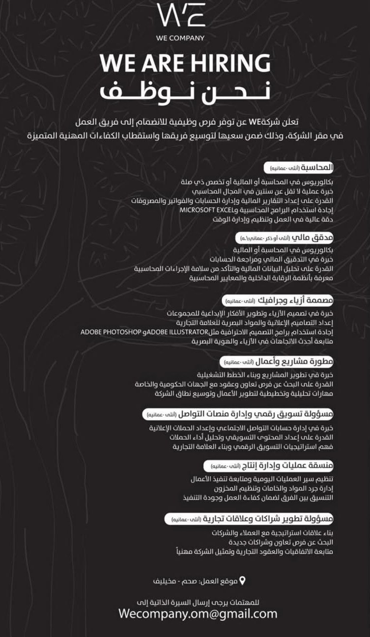 شركة we في صحم - توفر فرص وظيفية