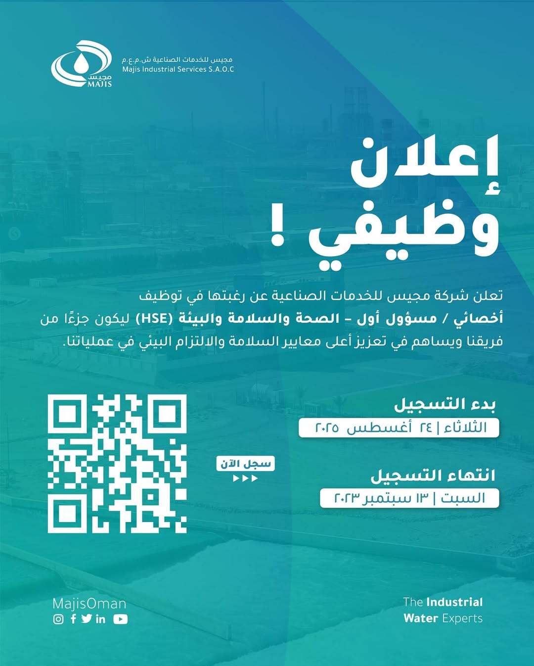 شركة مجيس للخدمات الصناعية - وظيفة شاغرة ( أخصائي / مسؤول أول - الصحة والسلامة والبيئة )