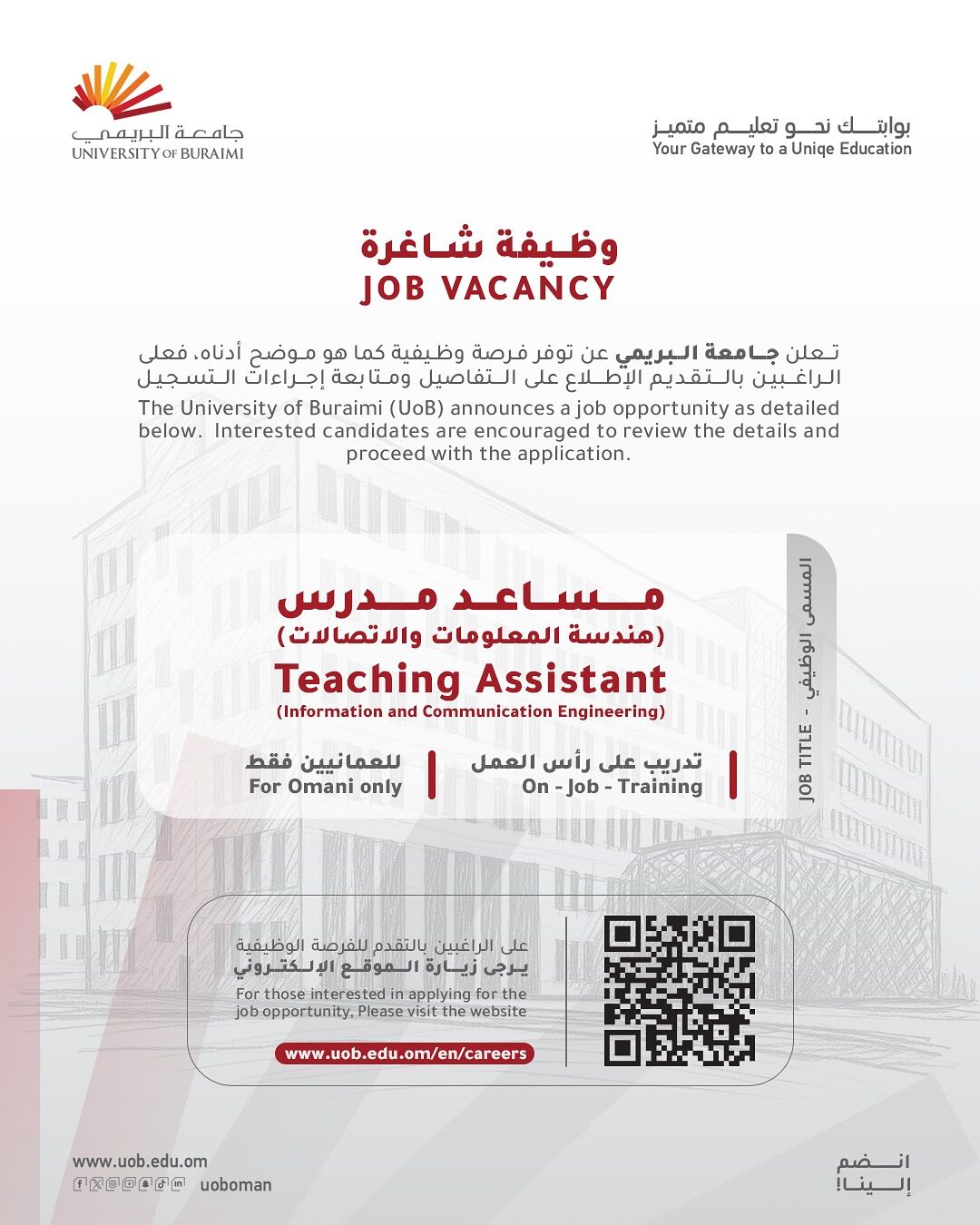 جامعة البريمي - وظيفة شاغرة ( مساعد مدرس هندسة المعلومات والاتصالات )