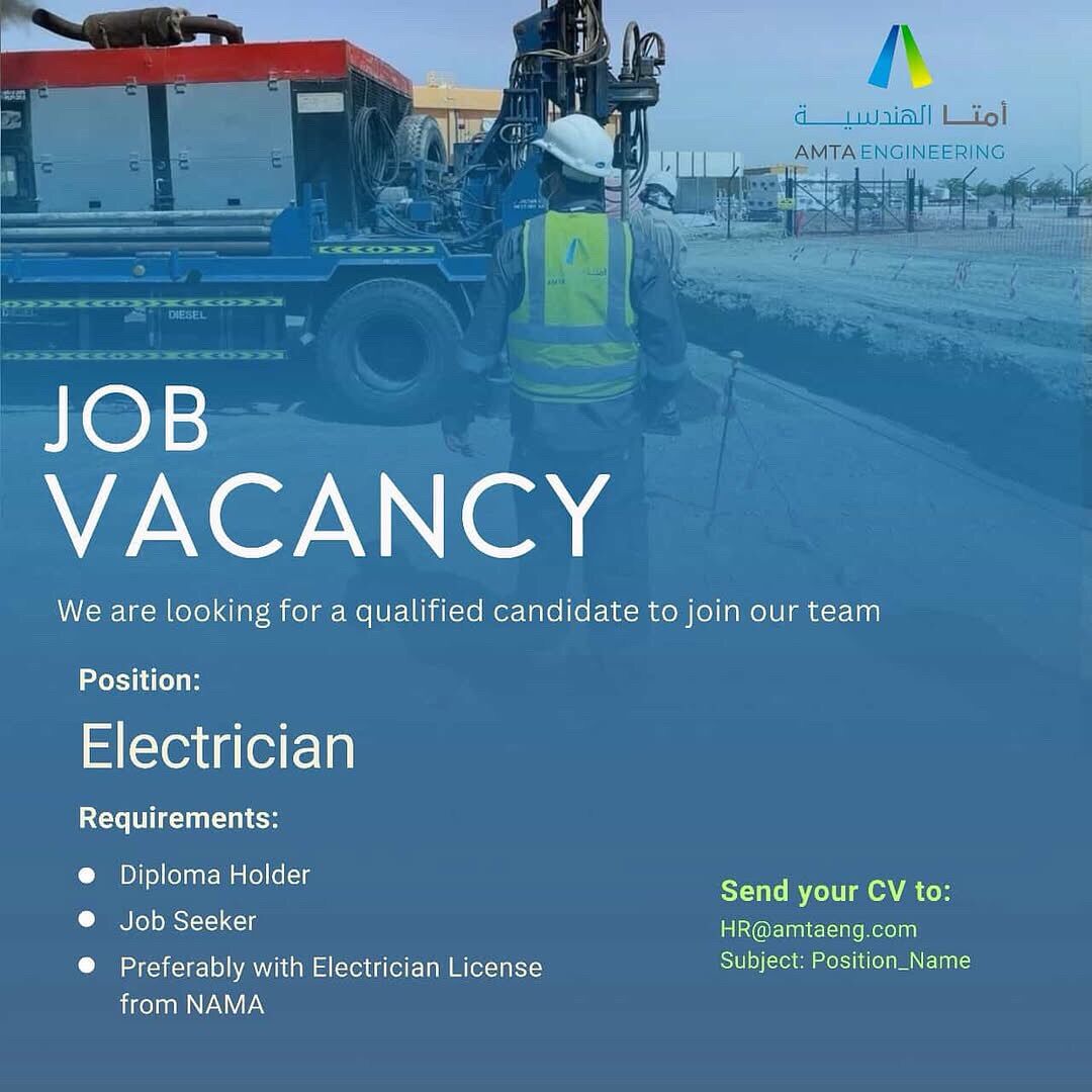 شركة أمتا الهندسية في مسقط - وظيفة شاغرة ( Electrician )