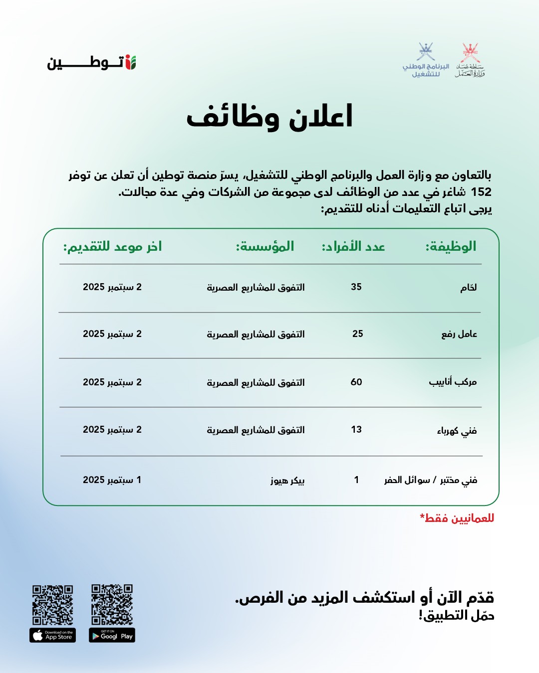 منصة توطين - 152 وظيفة شاغرة لدى مجموعة من الشركات وفي عدة مجالات