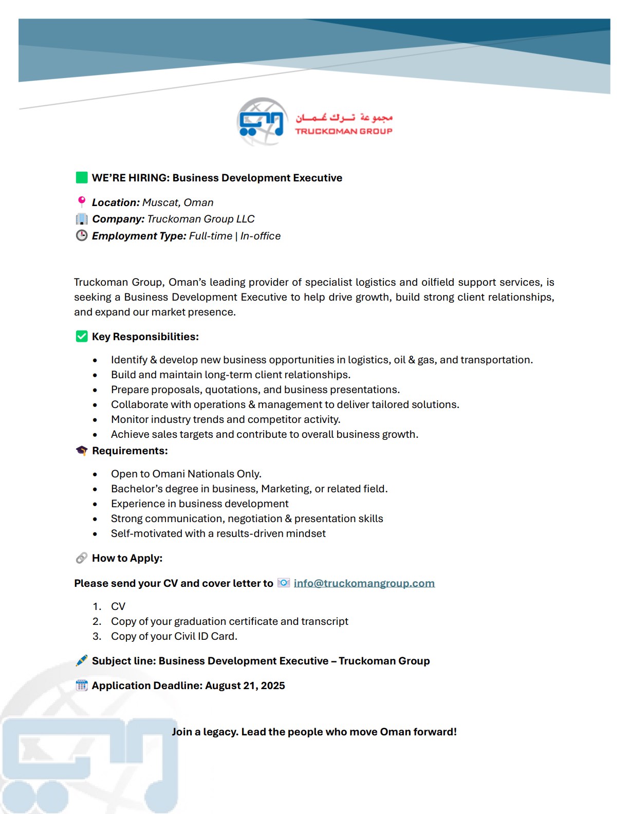 مجموعة ترك عمان في مسقط - وظيفة شاغرة ( Business Development Executive )