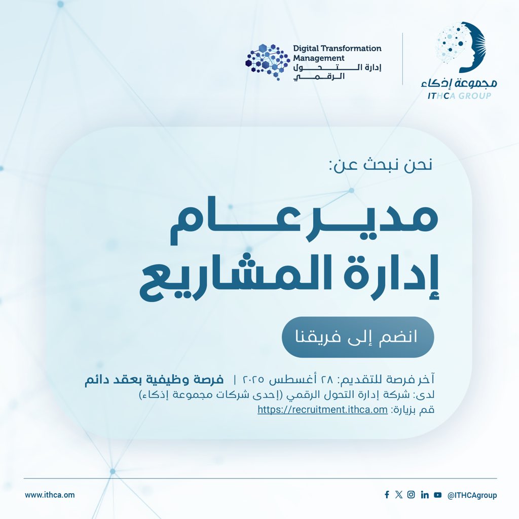 مجموعة إذكاء - وظيفة شاغرة ( مدير عام إدارة المشاريع )
