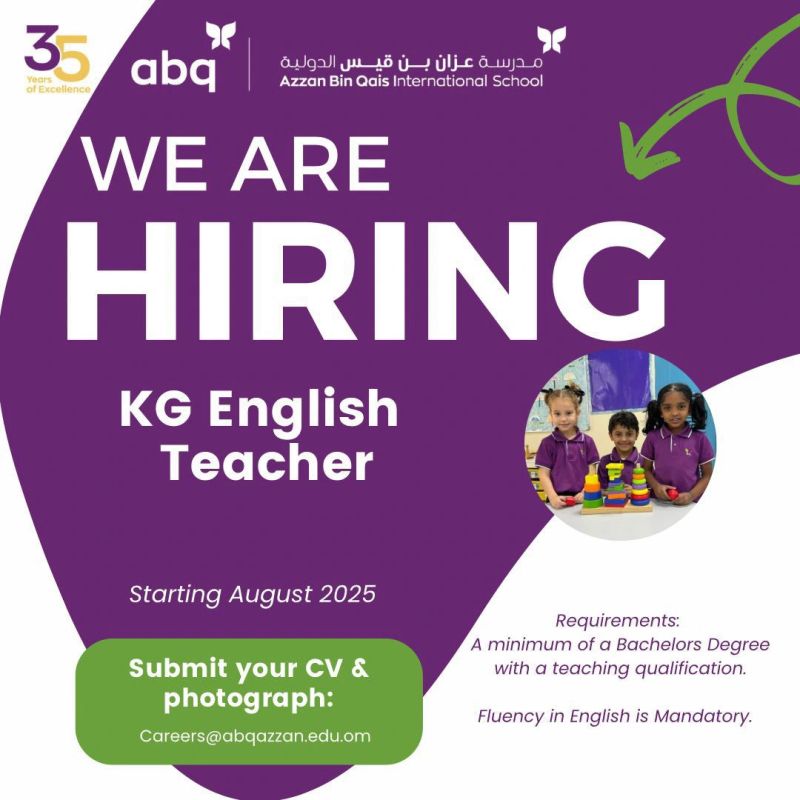 مدرسة عزان بن قيس الدولية في مسقط - وظيفة شاغرة ( KG English Teacher )