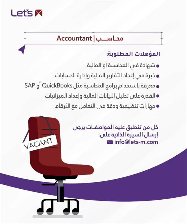 وكالة لتس أم للتسويق الالكتروني - وظائف شاغرة ( محاسب + مبيعات )