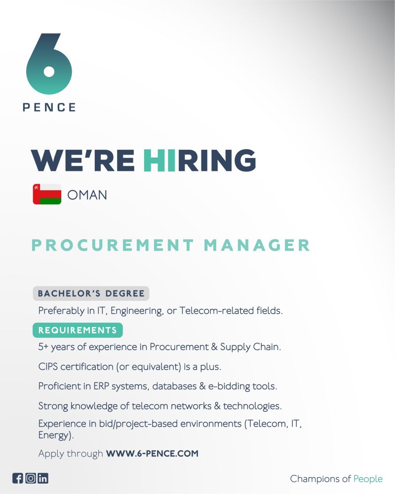 شركة 6 Pence - وظيفة شاغرة ( Procurement Manager )