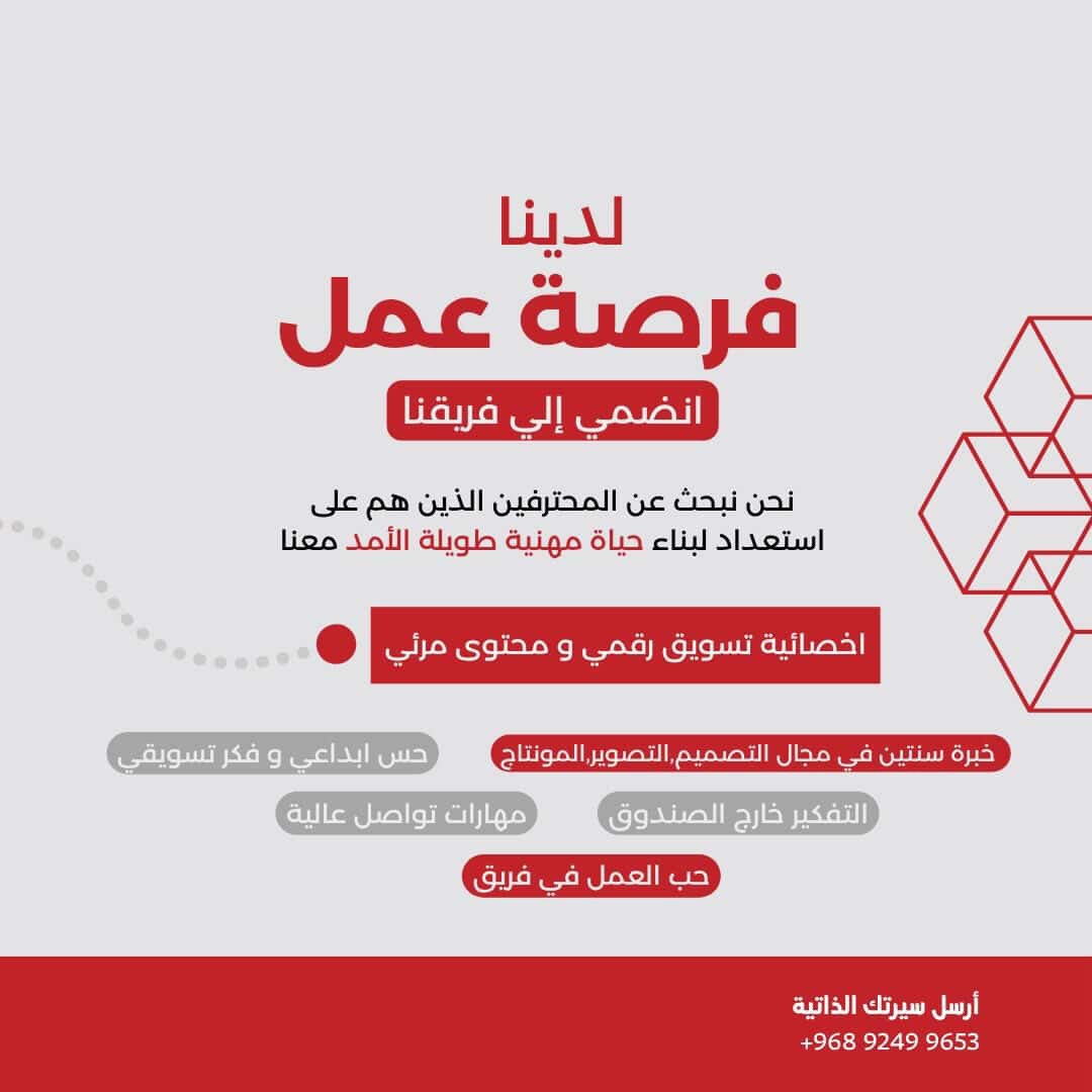 شركة رائدة في الخوض - وظيفة شاغرة ( اخصائية تسويق رقمي و محتوى مرئي )