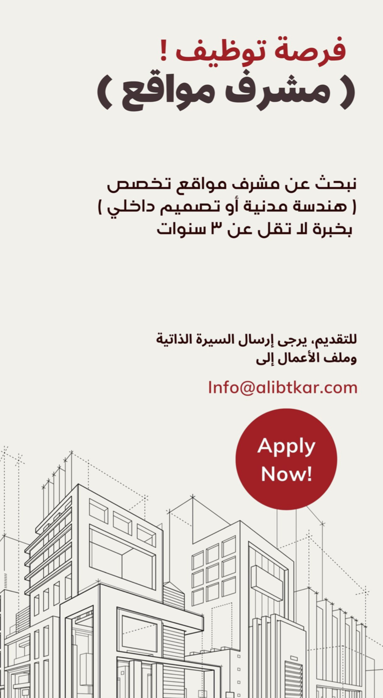 شركة الابتكار للتصميم والخدمات - وظيفة شاغرة ( مشرف مواقع )