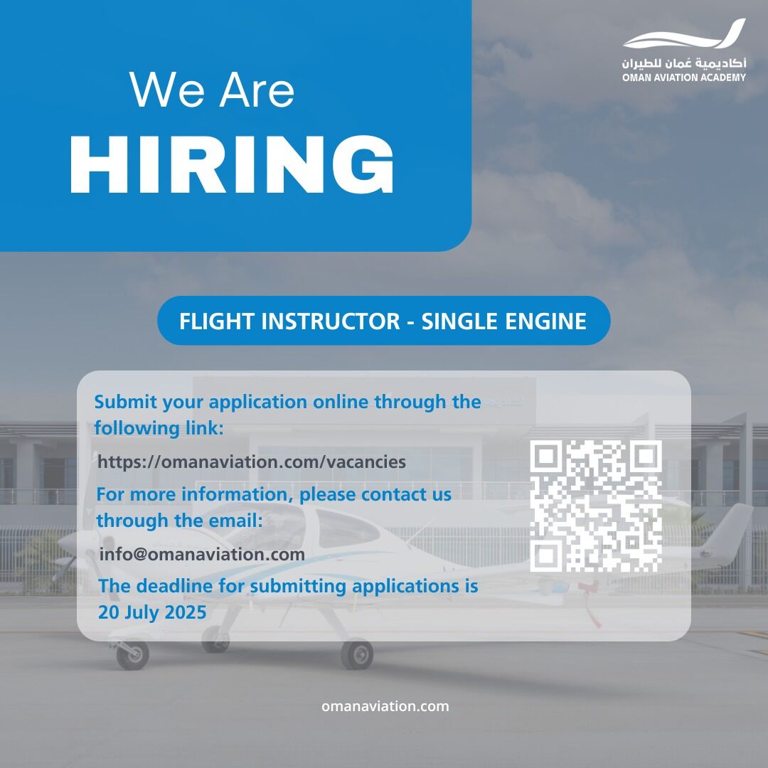 أكاديمية عمان للطيران - وظيفة شاغرة ( FLIGHT INSTRUCTOR - SINGLE ENGINE )