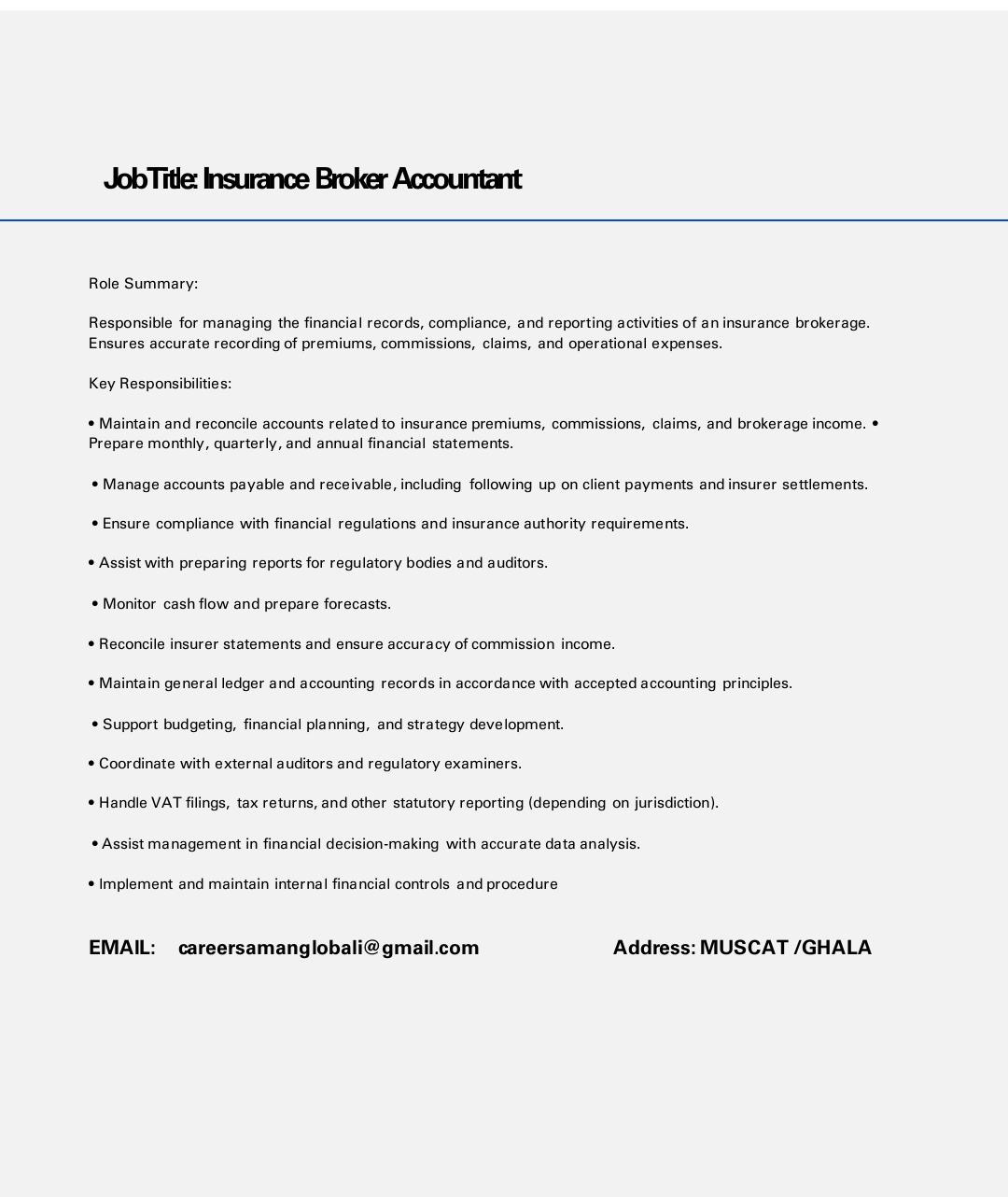 شركة أمان العالمية لخدمات التأمين في غلا - وظيفة شاغرة ( Insurance Broker Accountant )