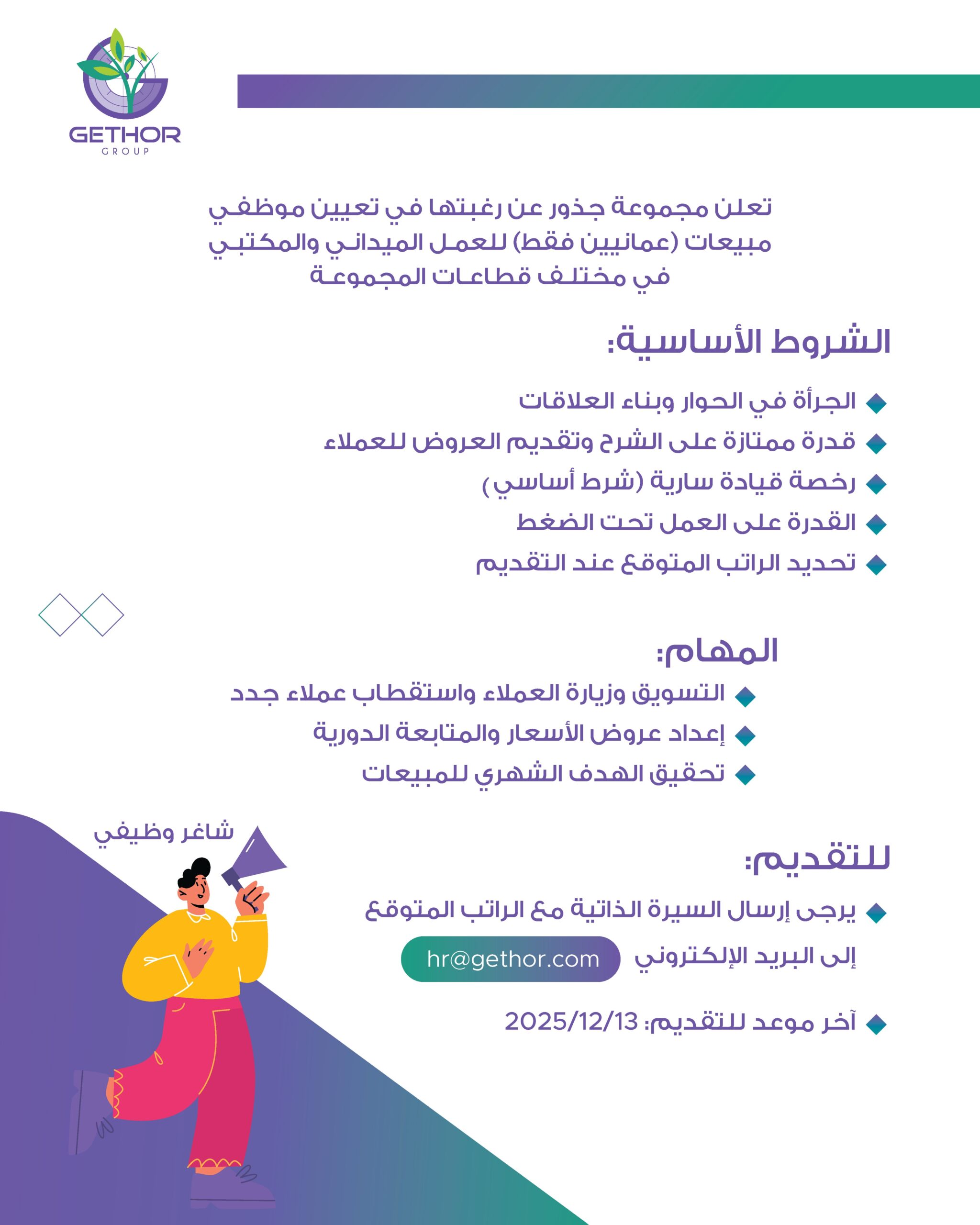 مجموعة جذور - وظيفة شاغرة ( مبيعات )
