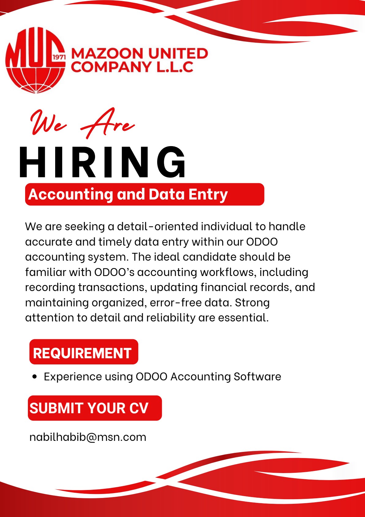 شركة مزون المتحدة - وظيفة شاغرة ( Accounting and Data Entry )