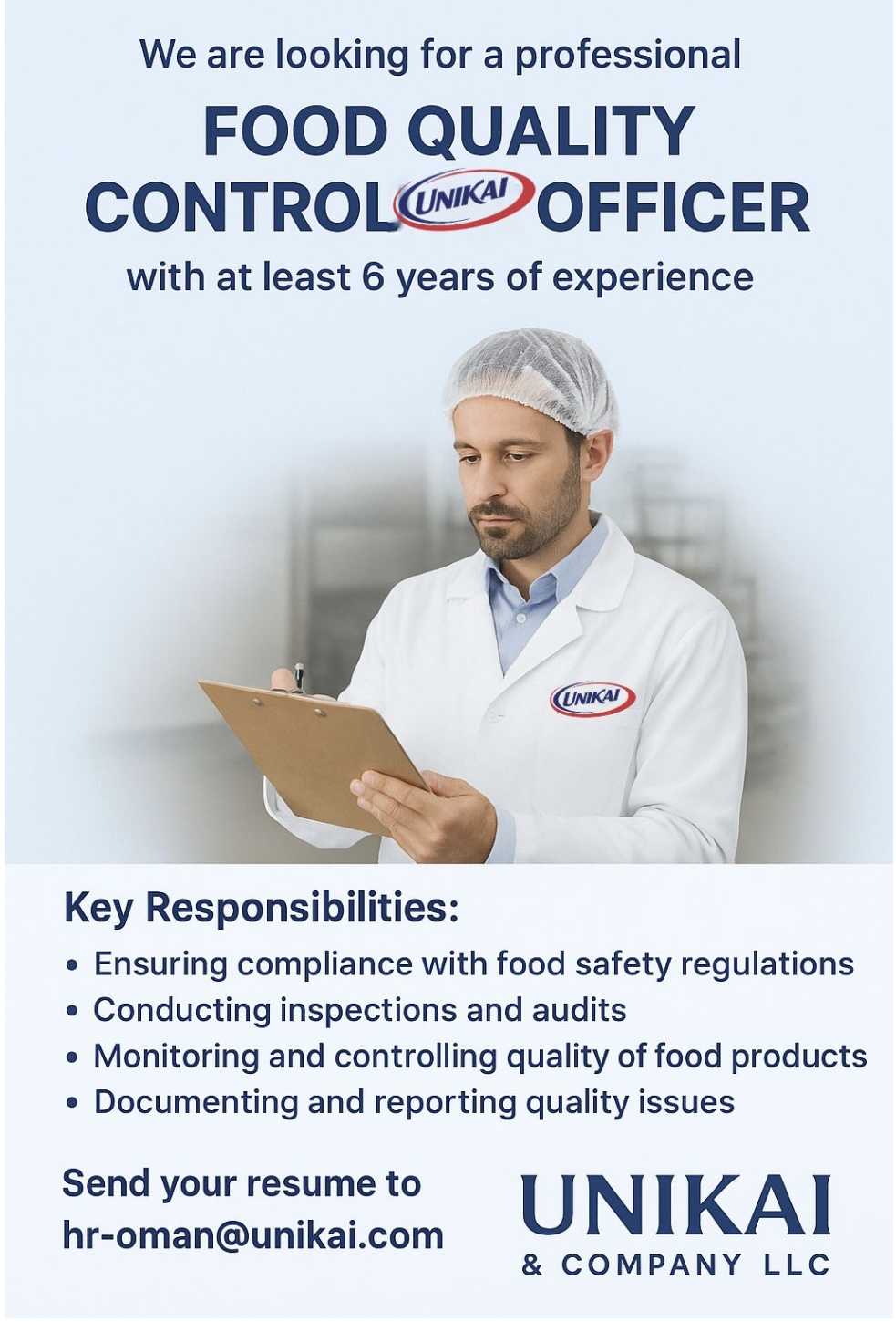شركة يونيكاي - وظيفة شاغرة ( FOOD QUALITY CONTROL OFFICER )