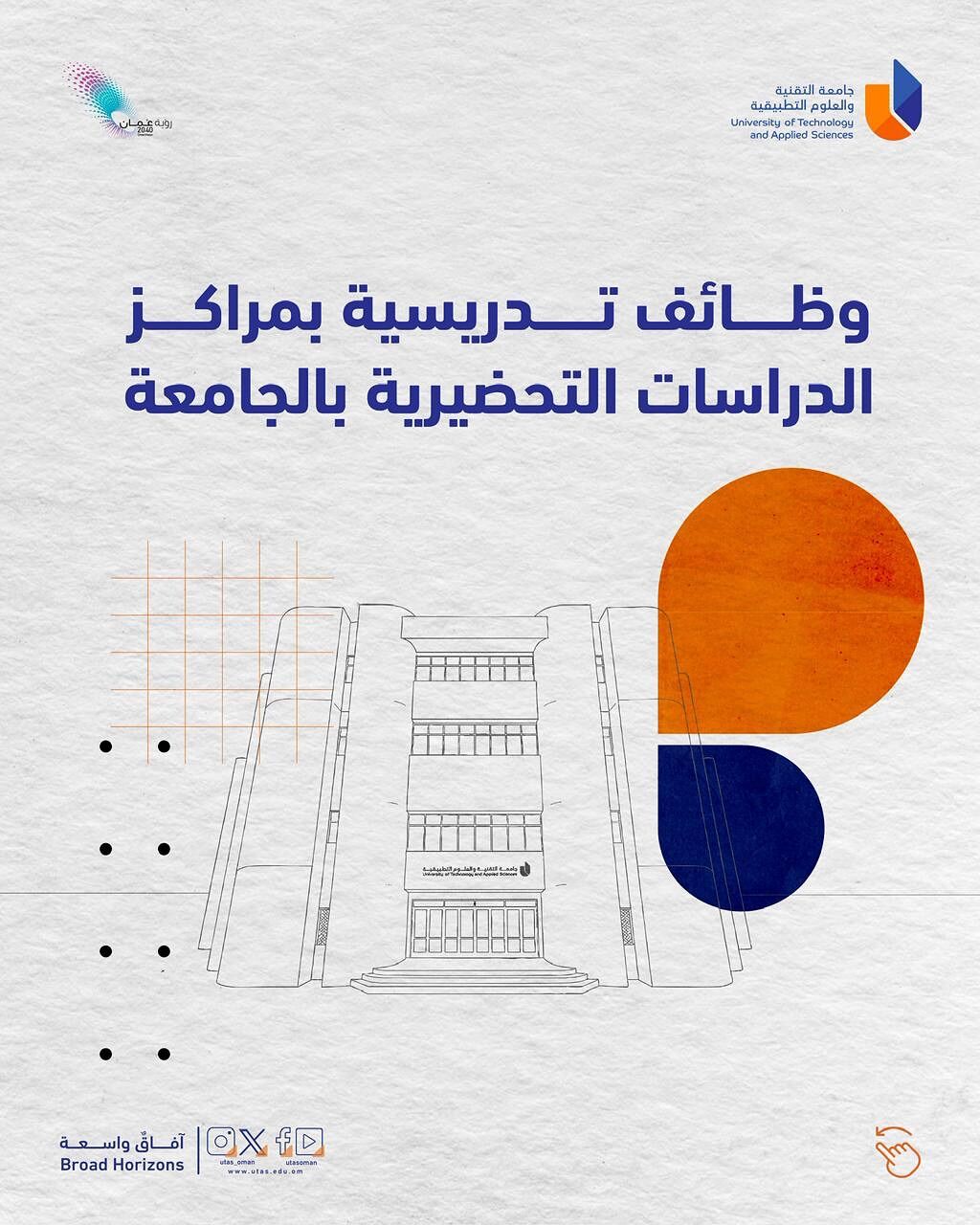 جامعة التقنية والعلوم التطبيقية بمسقط - وظائف تدريسية بمراكز الدراسات التحضيرية