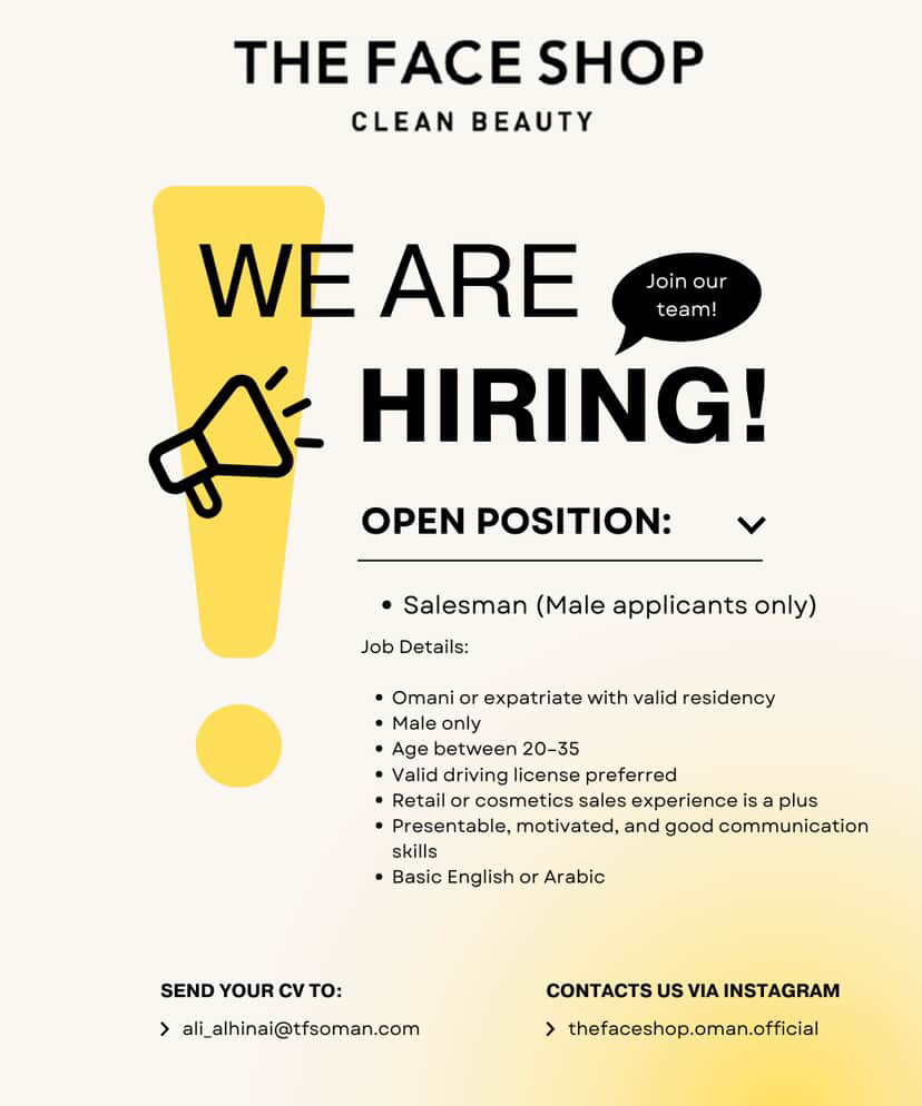 ذا فيس شوب كلين بيوتي في مسقط - وظيفة شاغرة ( مبيعات )