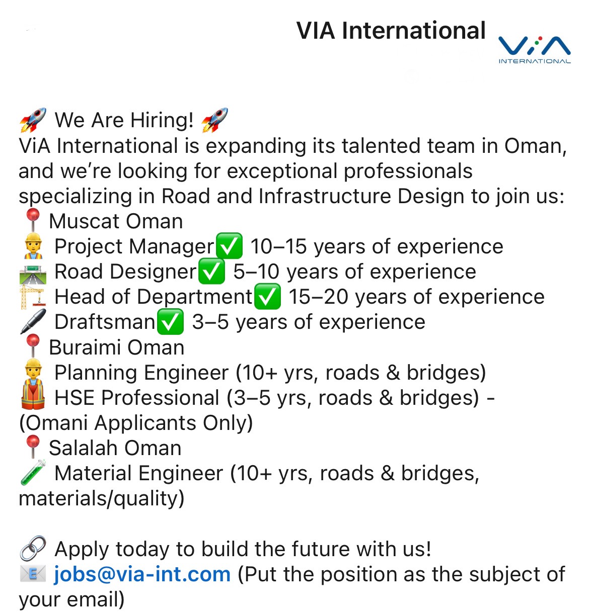 شركة VIA International - وظائف شاغرة
