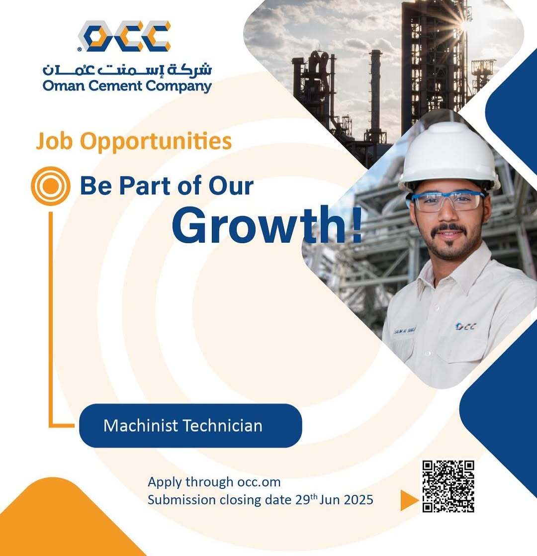شركة إسمنت عمان - وظيفة شاغرة ( Machinist Technician )