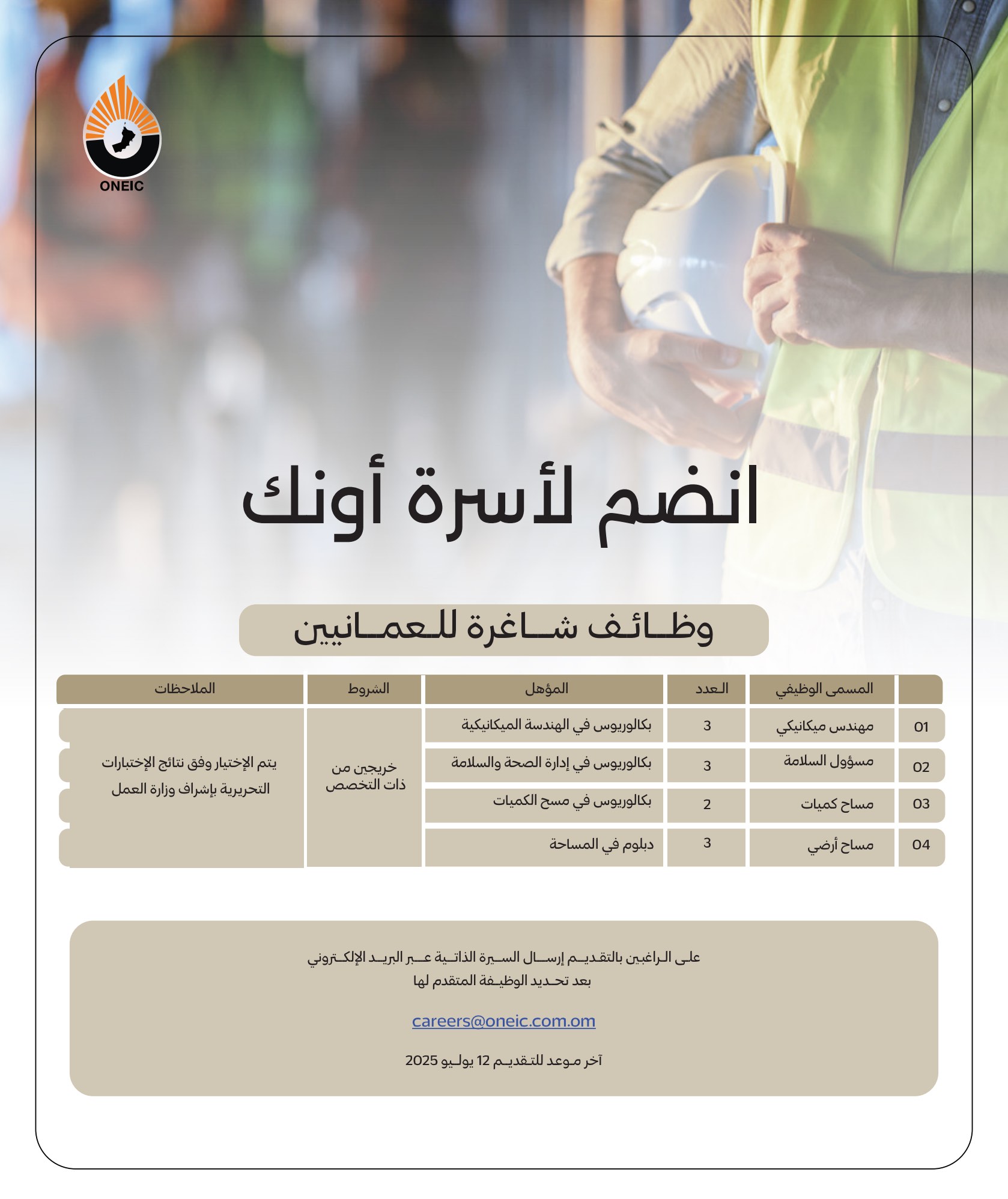 الشركة الوطنية العمانية للهندسة والاستثمار في مسقط - وظائف شاغرة