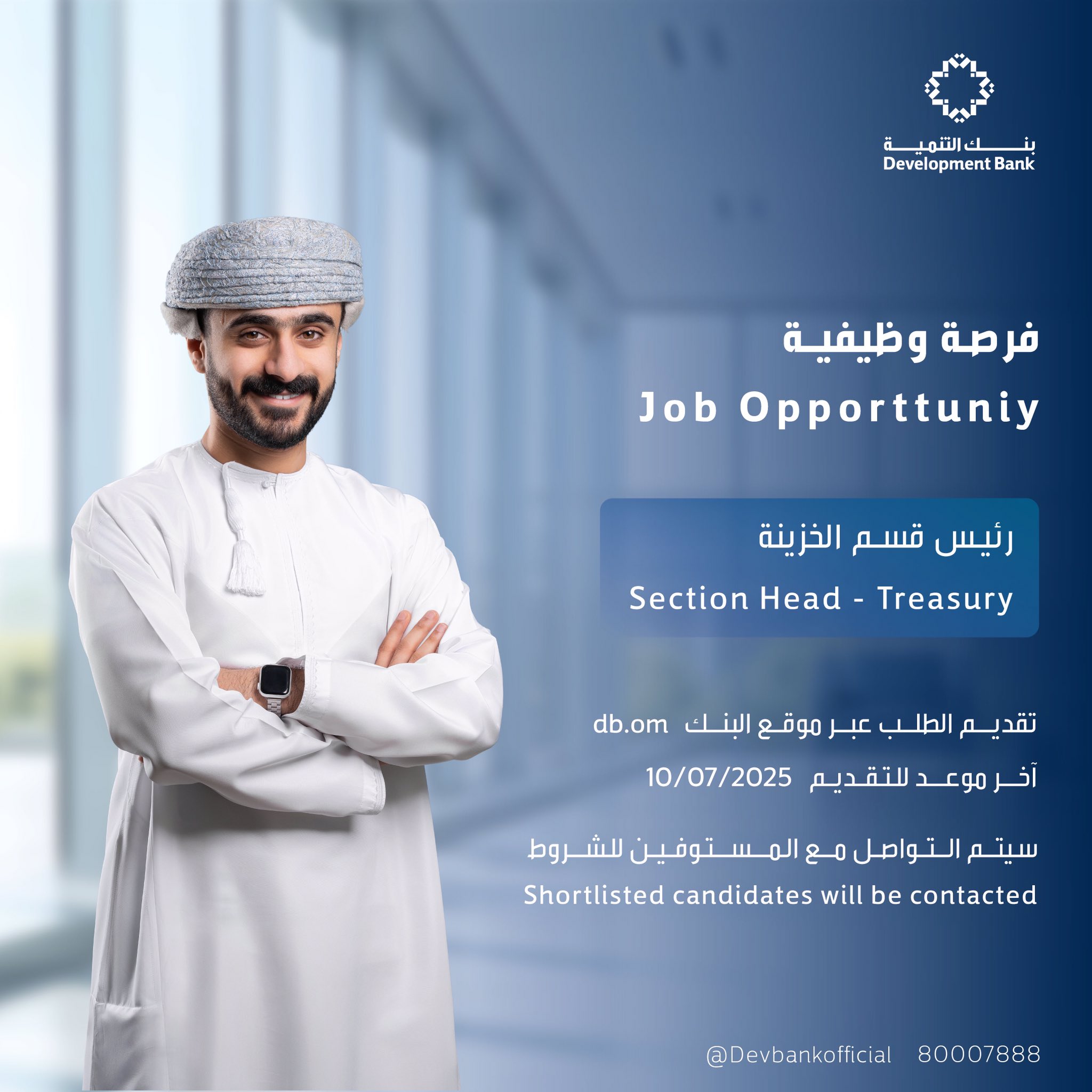 بنك التنمية - وظيفة شاغرة ( رئيس قسم الخزينة )