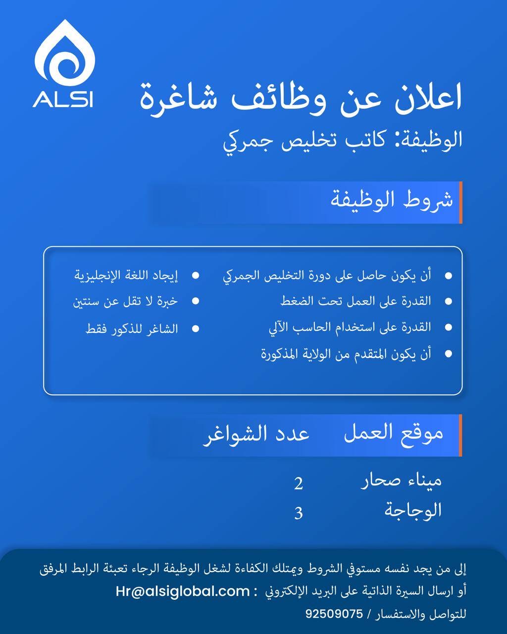 الشركة ألسي العالمية في صحار - وظيفة شاغرة ( كاتب تخليص جمركي )