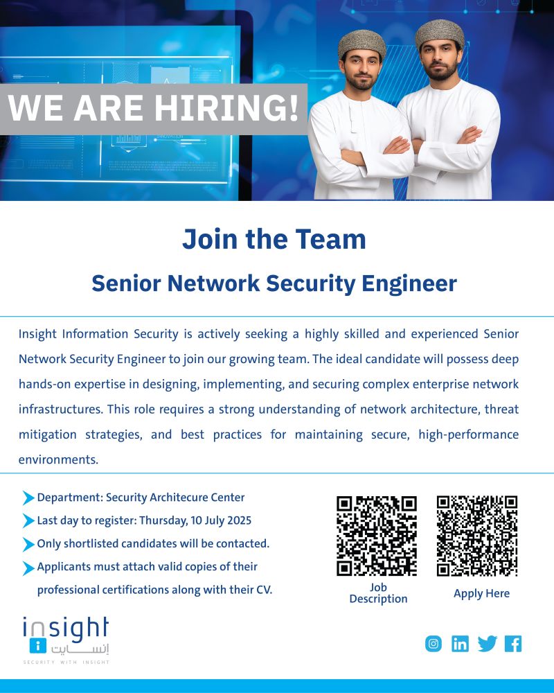 شركة إنسايت - وظيفة شاغرة ( Senior Network Security Engineer )