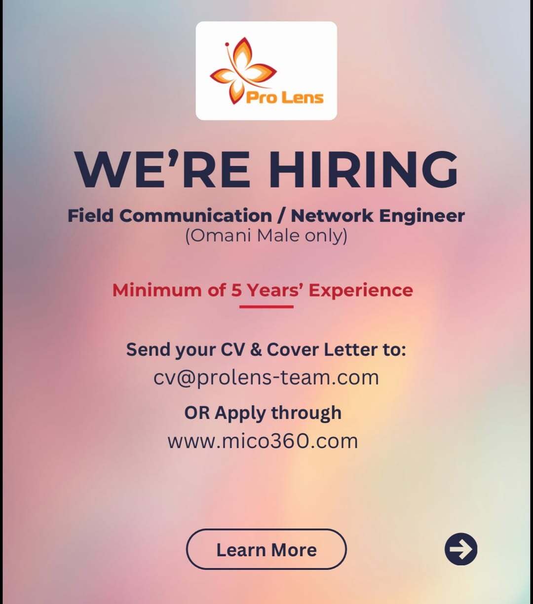 شركة Pro Lens - وظيفة شاغرة ( Field Communication / Network Engineer )