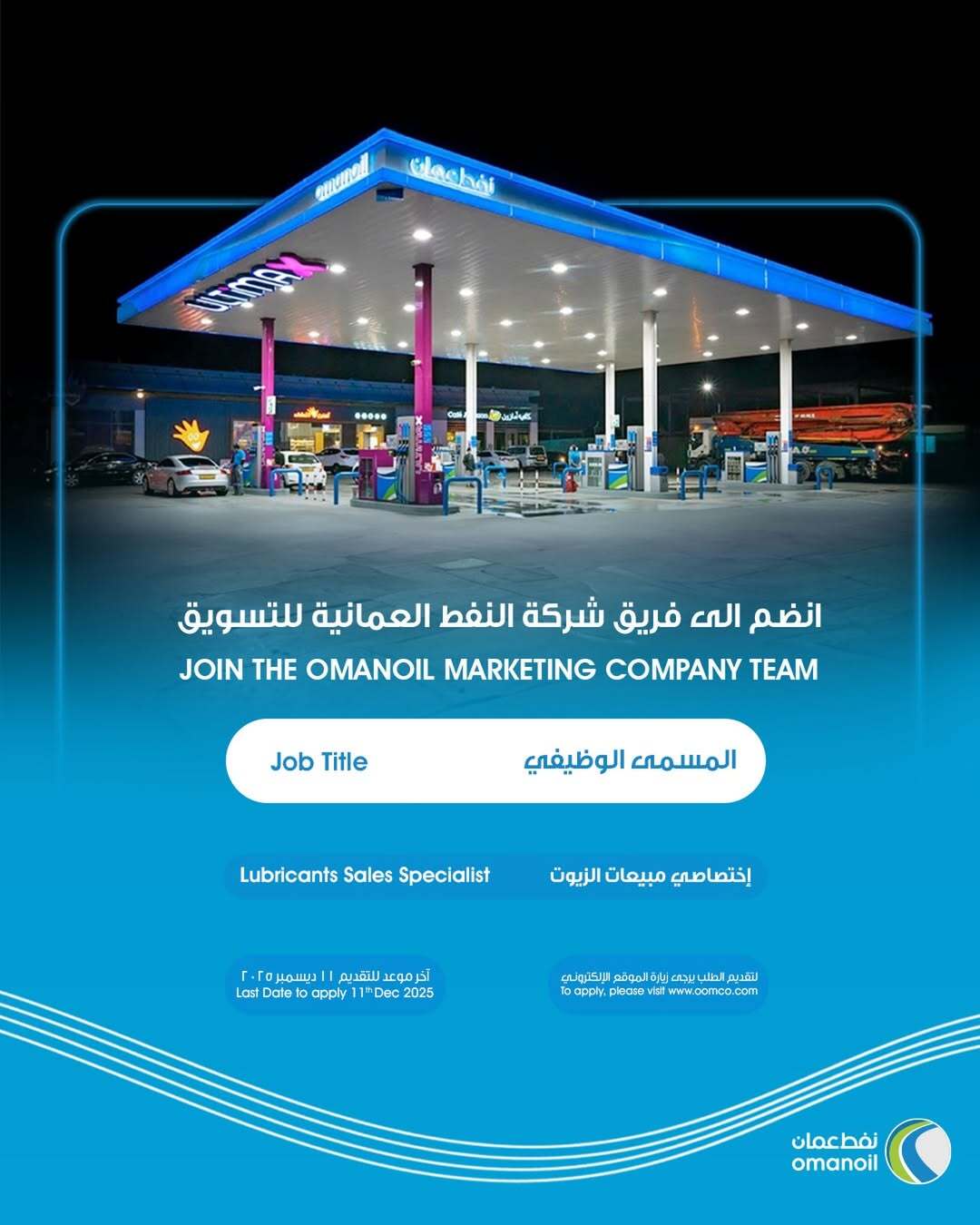 شركة النفط العمانية للتسويق - وظيفة شاغرة ( إختصاصي مبيعات الزيوت )