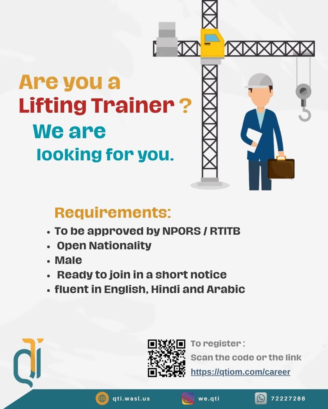 معهد الجودة للتدريب في مسقط - وظيفة شاغرة ( مدرب معدات الرفع )