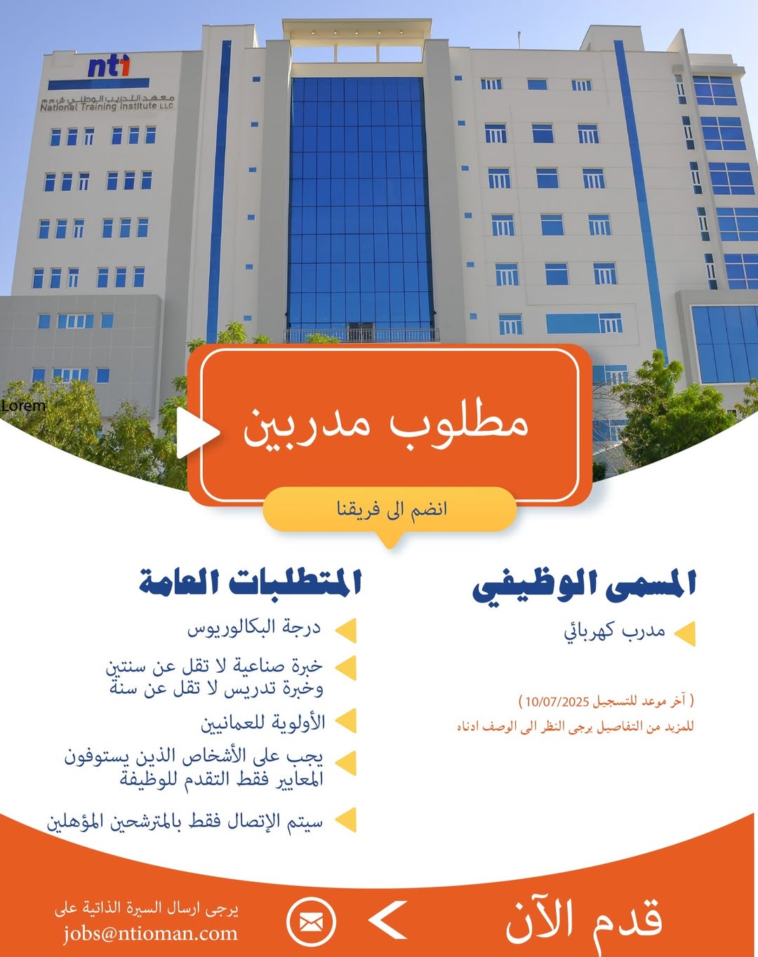 معهد التدريب الوطني في مسقط - وظيفة شاغرة ( مدرب كهربائي )