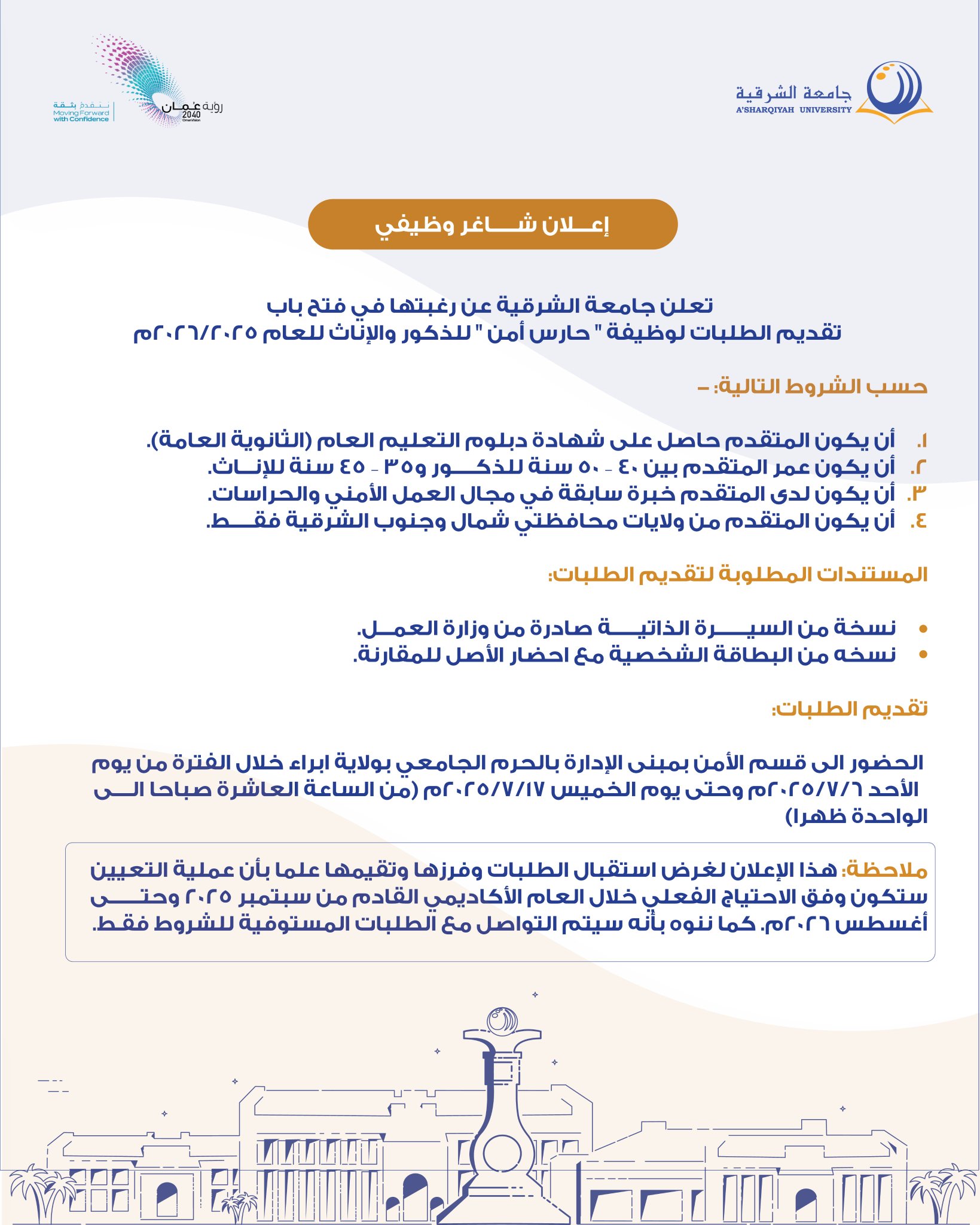 جامعة الشرقية - وظيفة شاغرة ( حارس أمن )
