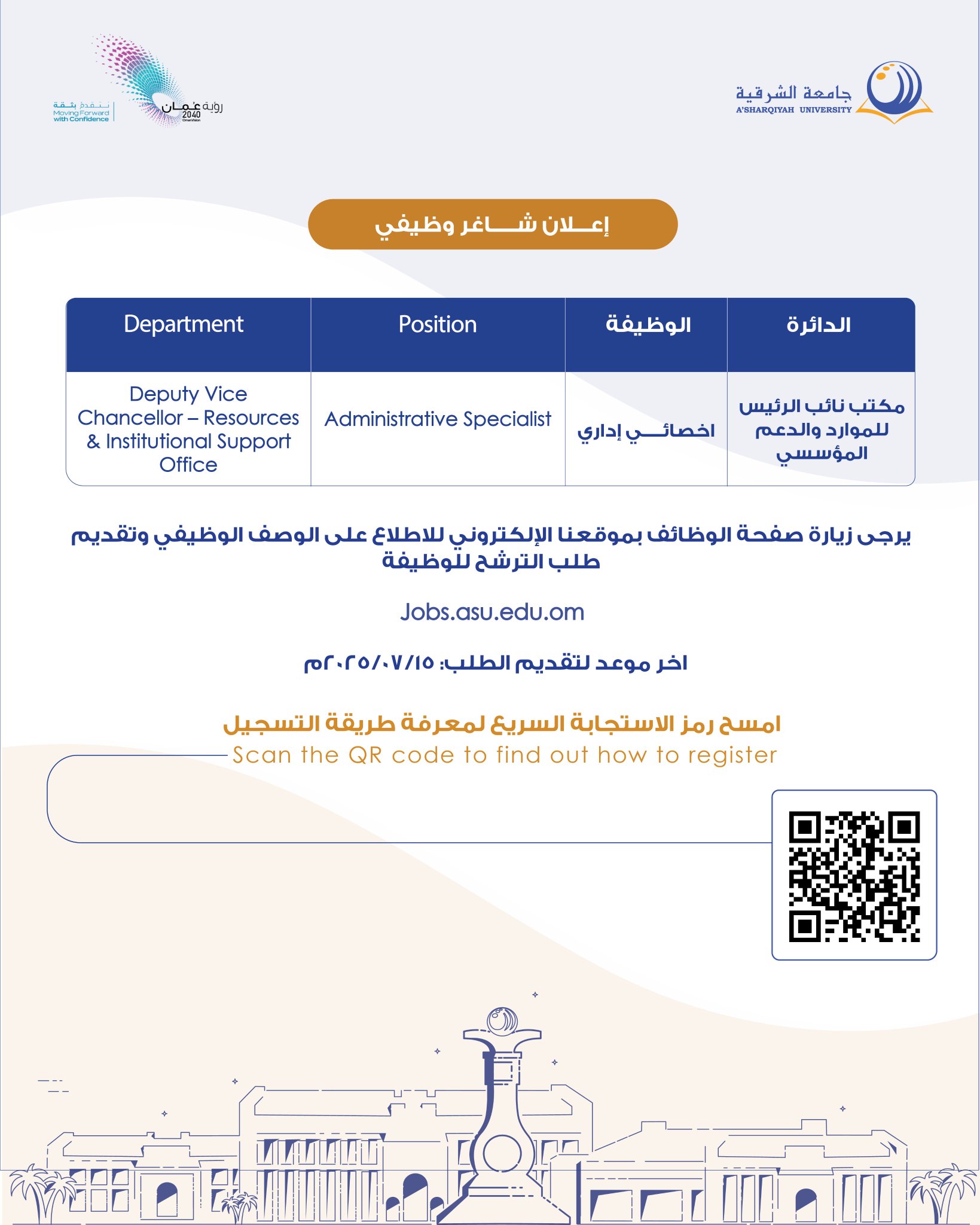 جامعة الشرقية - وظيفة شاغرة ( اخصائي إداري )