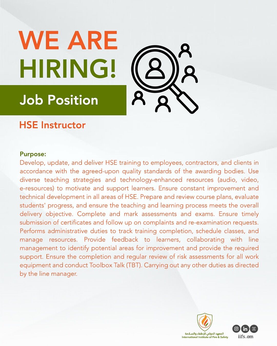 المعهد الدولي للإطفاء والسلامة في مسقط - وظيفة شاغرة ( HSE Instructor )