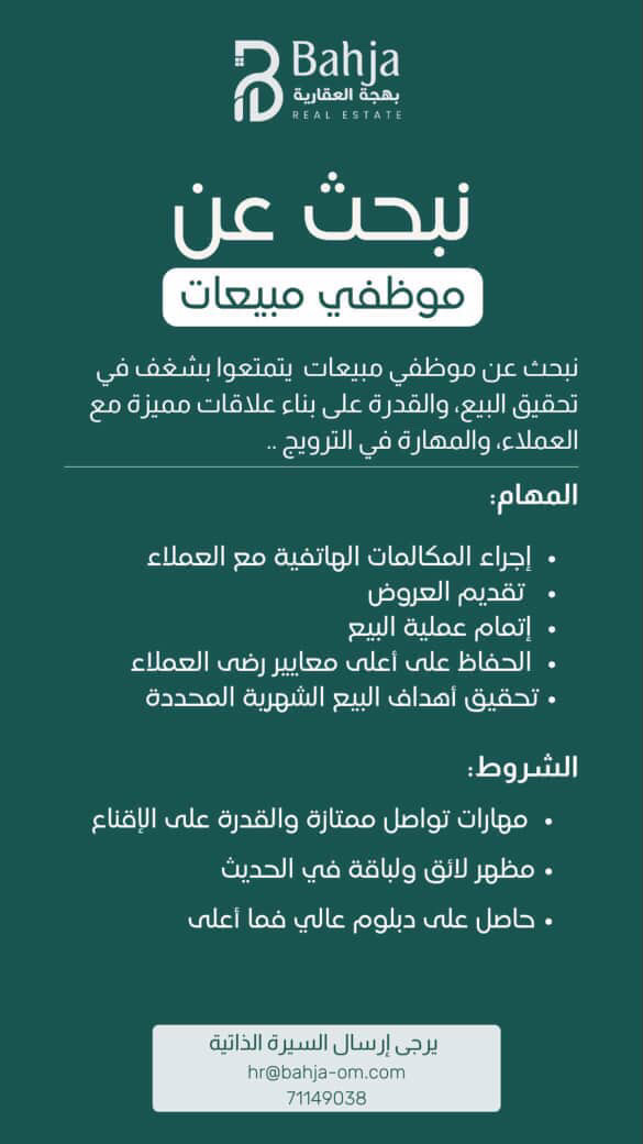 شركة بهجة العقارية - وظيفة شاغرة ( مبيعات )