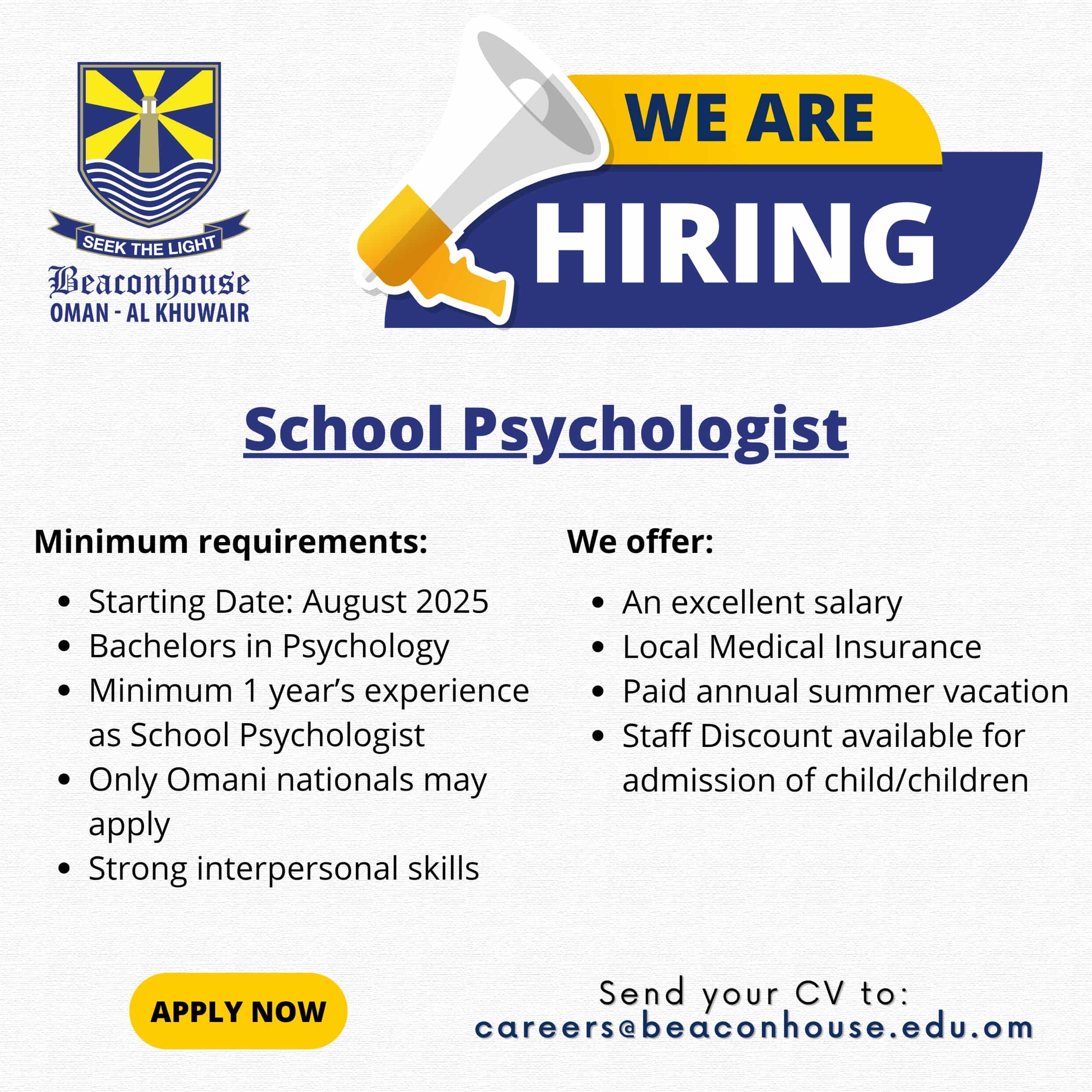 مدرسة بيكن هاوس الخاصة في مسقط - وظيفة شاغرة ( School Psychologist )